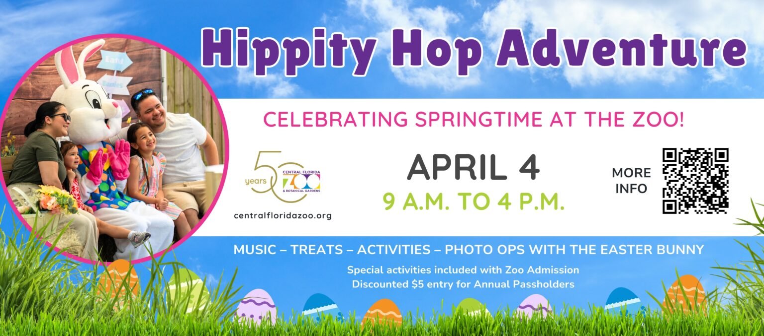 Central Florida Zoo & Botanical Gardens is hosting our annual Hippity Hop on April 4th! This is our annual Spring-themed event. We will have treat stations, exciting activities, an appearance from the Easter Bunny, special enrichment for the animals, local vendors, and more!